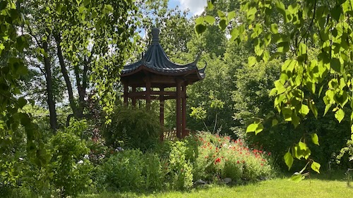 Rosengarten mit chinesischem Pavillon